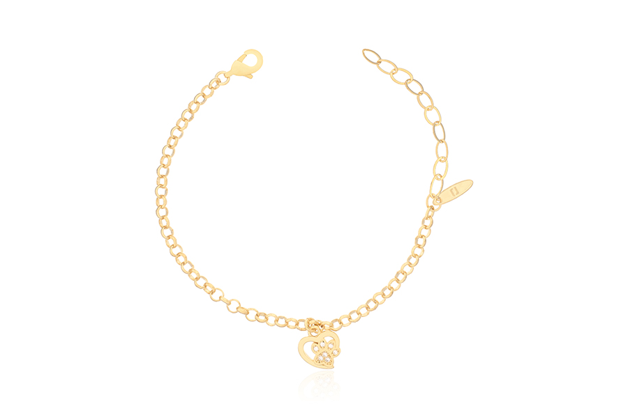 PULSEIRA BANHADO EM OURO INFANTIL ELO PORTUGUÊS 3mm LARGURA 13cm COMPRIMENTO E CORAÇÃO 9mm LARGURA