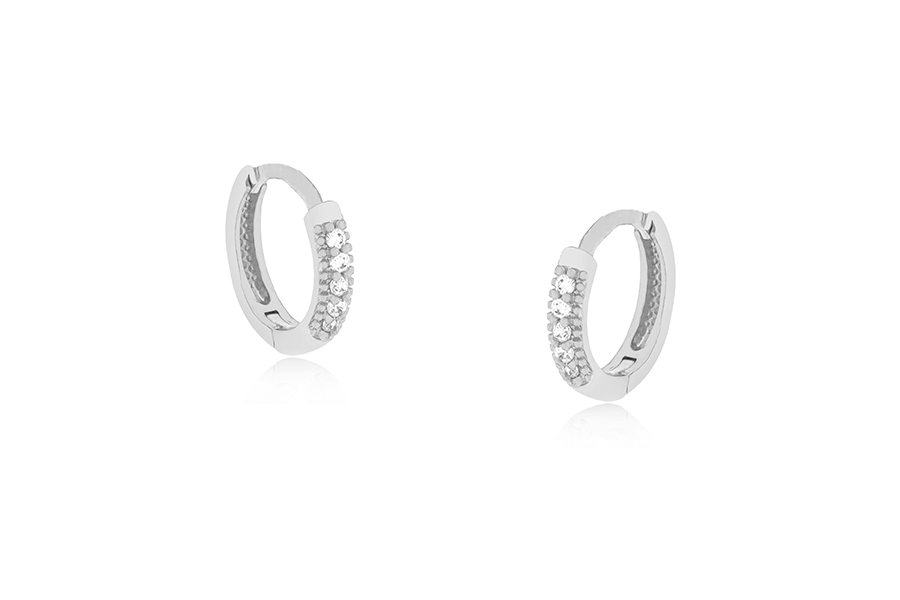 BRINCO BANHADO EM RÓDIO BRANCO, ZIRCÔNIA NAVETE, 18mm ALTURA
