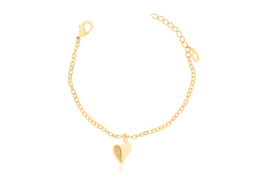 PULSEIRA BANHADO EM OURO INFANTIL ELO PORTUGUÊS 3mm LARGURA 13cm COMPRIMENTO E CORAÇÃO 9mm LARGURA