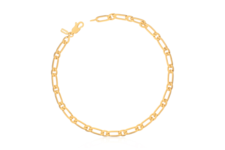PULSEIRA BANHADA EM OURO, ELO 4,50mm LARGURA, 16cm COMPRIMENTO E PONTO DE LUZ 8mm