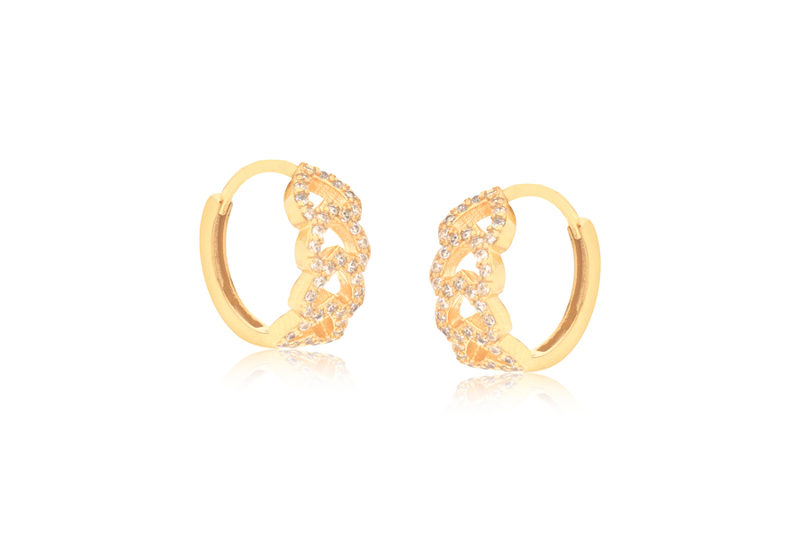 BRINCO BANHADO EM OURO, 7mm DIÂMETRO COM 14 ZIRCÔNIAS