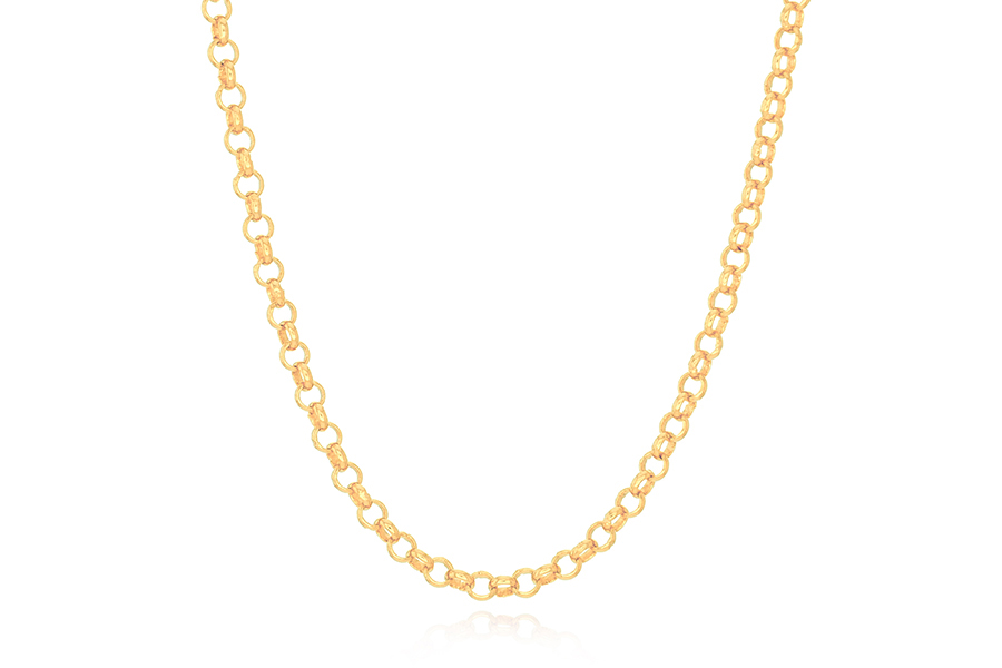 CORRENTE BANHADA EM OURO, CORDA 4mm, 40cm COMPRIMENTO, EXTENSOR 5cm COMPRIMENTO E PESO 20,00g