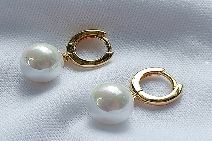 BRINCO BANHADO EM OURO, PÉROLA SHELL PÃO 6mm