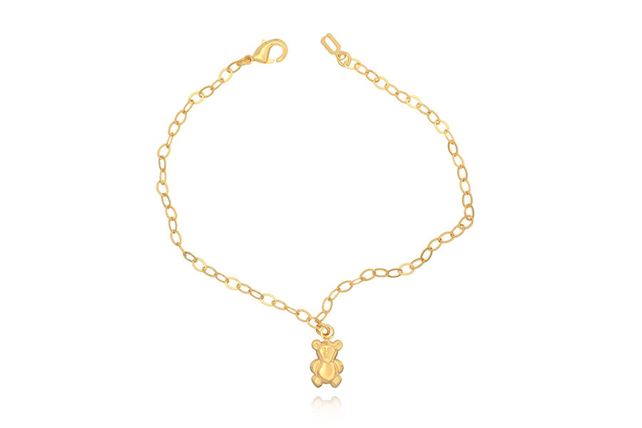PULSEIRA BANHADO EM OURO INFANTIL ELO PORTUGUÊS 3mm LARGURA 13cm COMPRIMENTO E CORAÇÃO 9mm LARGURA