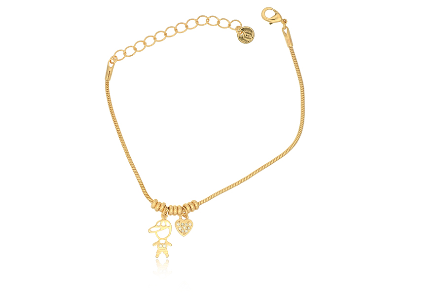 PULSEIRA BANHADA EM OURO, RABO DE RATO 1,40mm ESPESSURA, MENINO E CORAÇÃO