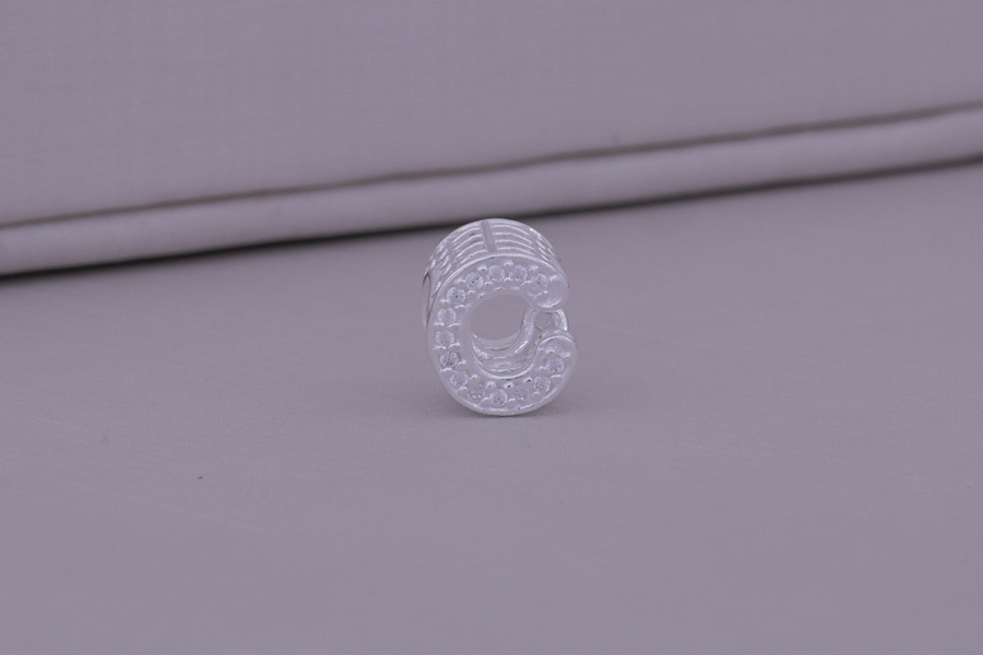 PINGENTE EM PRATA, SEPARADOR, LETRA ''C'' EM FILIGRANA CRAVEJADA, 9mm ALTURA
