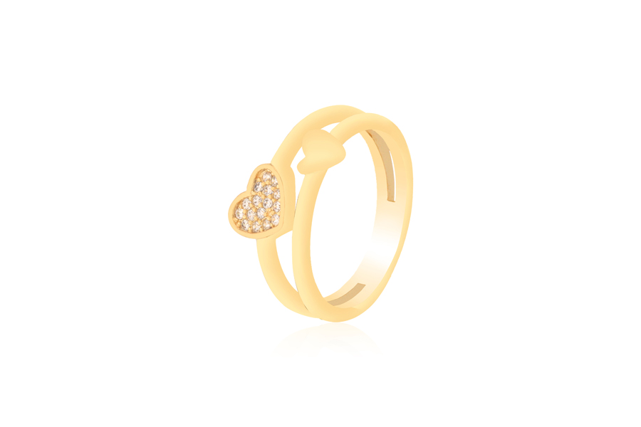 ANEL BANHADO EM OURO CORAÇÃO ZIRCÔNIA 4X4mm PARA QUALQUER COR DE PEDRA