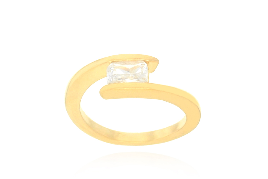 ANEL BANHADO EM OURO CORAÇÃO ZIRCÔNIA 4X4mm PARA QUALQUER COR DE PEDRA