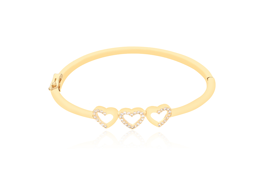 BRACELETE BANHADO EM OURO, 3 CORAÇÕES, 6,50cm COMPRIMENTO
