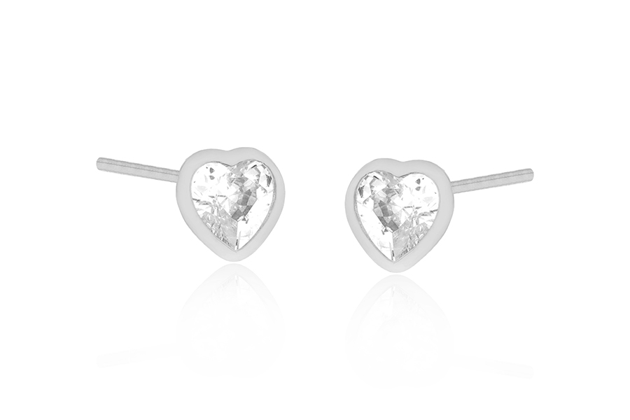 BRINCO BANHADO EM PRATA LEVE, CORAÇÃO 9mm LARGURA COM ZIRCÔNIAS BRANCAS OU COLORIDAS