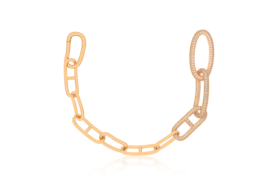 PULSEIRA BANHADA EM OURO, ELOS ALTERNADOS, 19cm COMPRIMENTO, LINHA OUSE
