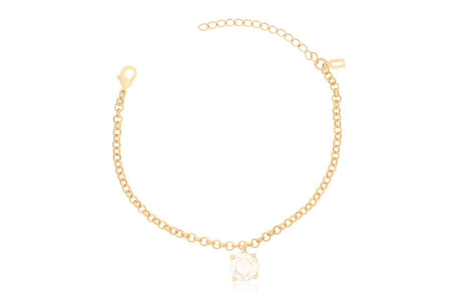 PULSEIRA BANHADA EM OURO, ELO PORTUGUÊS 2,50mm, 16cm COMPRIMENTO, EXTENSOR 5cm E PONTO DE LUZ 8mm