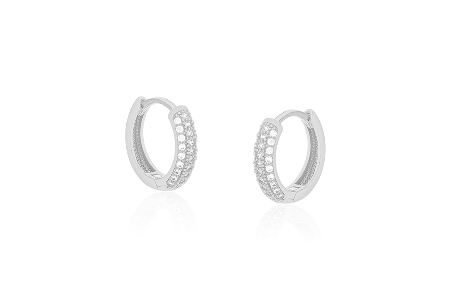 BRINCO BANHADO EM RÓDIO BRANCO, ZIRCÔNIA NAVETE, 18mm ALTURA