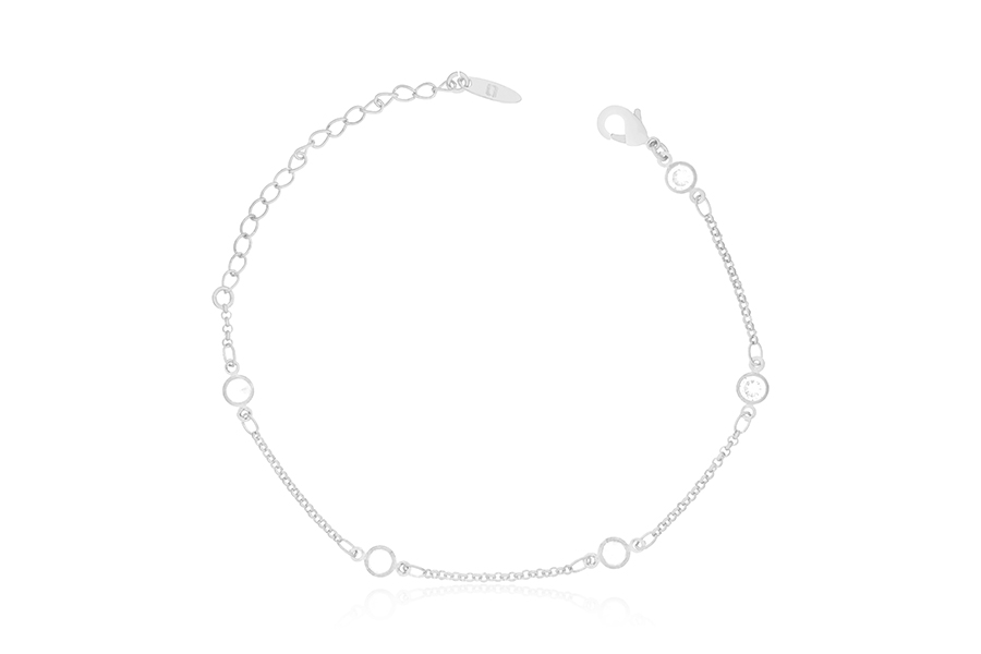 PULSEIRA BANHADA EM PRATA LEVE, ELO PORTUGUÊS 1,50mm, ZIRCÔNIAS REDONDAS 4,50mm, 16cm COMPRIMENTO, EXTENSOR 5cm