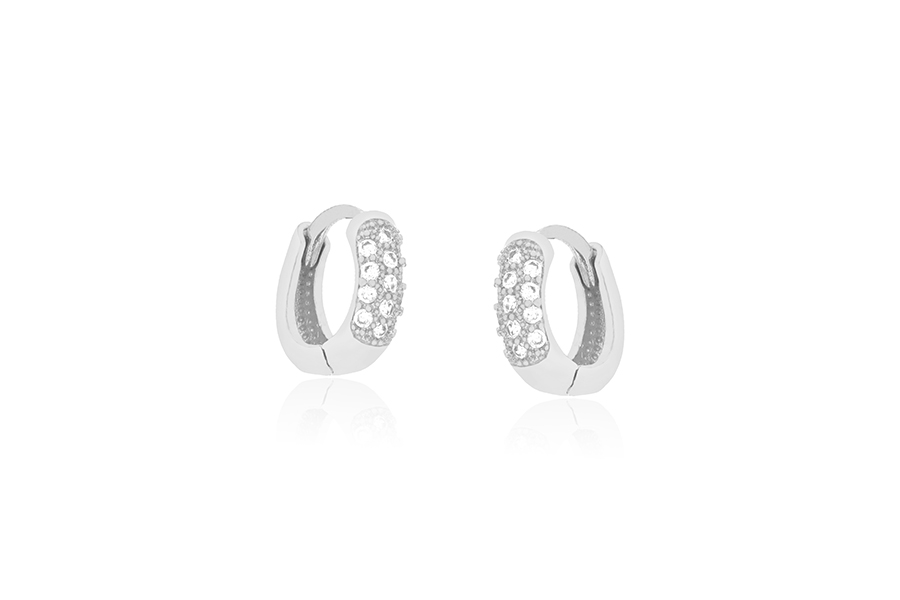 BRINCO BANHADO EM RÓDIO BRANCO, ZIRCÔNIA NAVETE, 18mm ALTURA