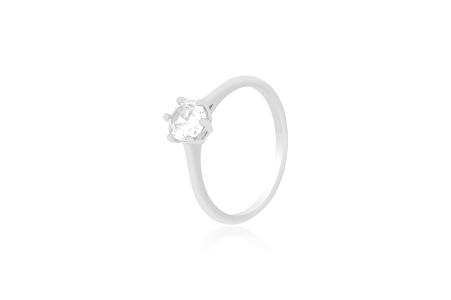 ANEL EM PRATA, SOLITÁRIO 5mm, COM BANHO DE RÓDIO BRANCO, COLEÇÃO AURA