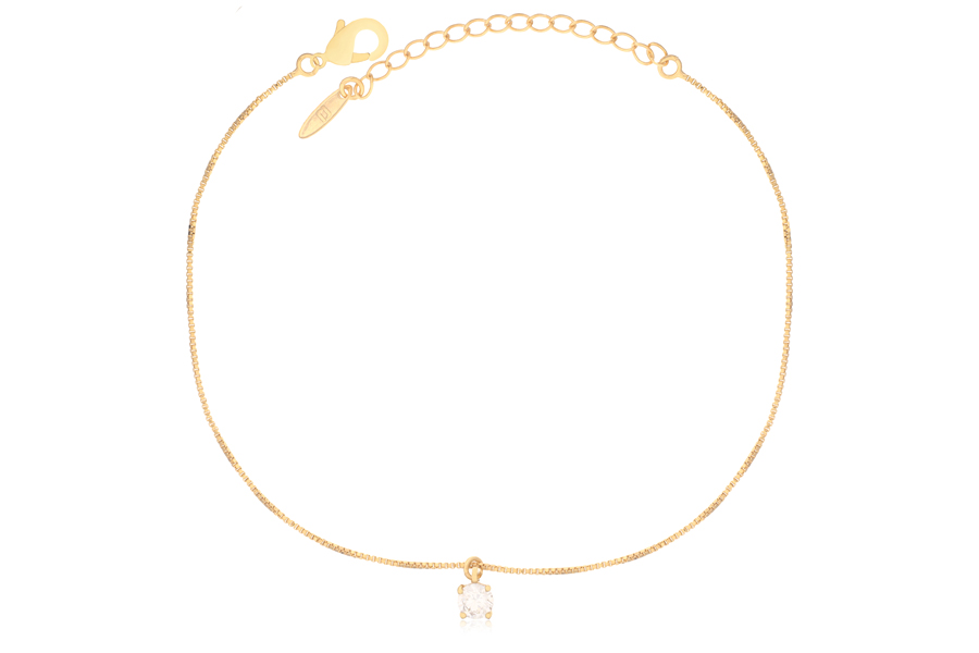 TORNOZELEIRA BANHADA EM OURO, ELO VENEZIANA 0,80mm, 22cm COMPRIMENTO E PONTO DE LUZ 5mm, LINHA TRADICIONAL