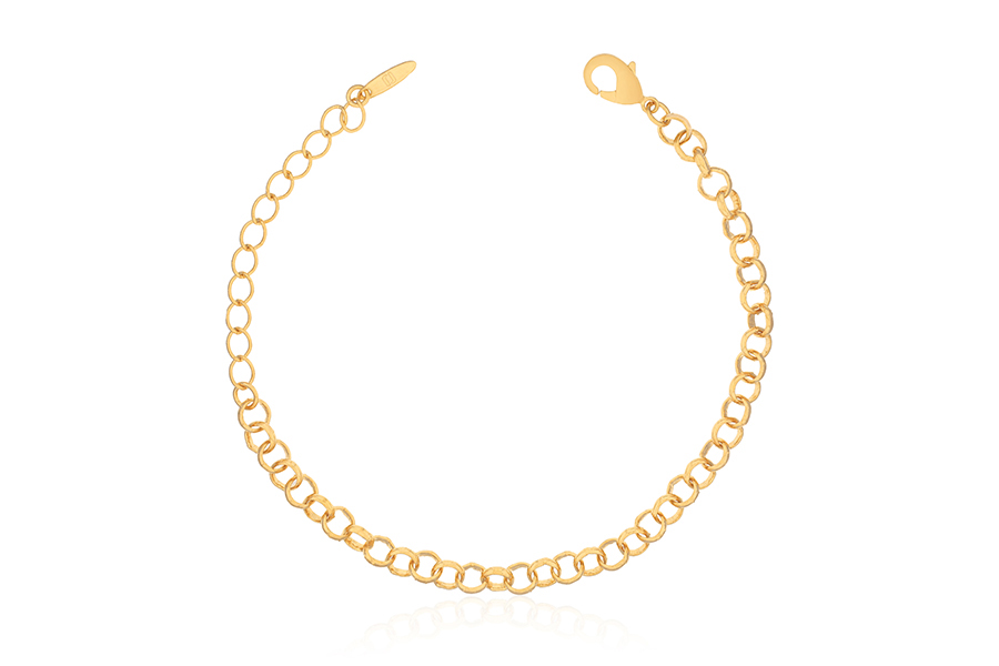 PULSEIRA BANHADA EM OURO, ELO 4,50mm LARGURA, 16cm COMPRIMENTO E PONTO DE LUZ 8mm