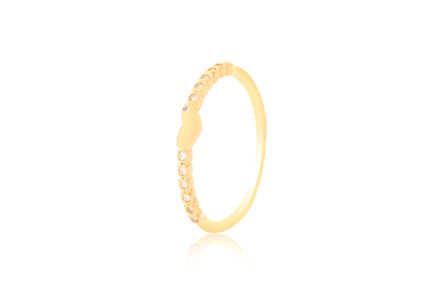 ANEL BANHADO EM OURO CORAÇÃO ZIRCÔNIA 4X4mm PARA QUALQUER COR DE PEDRA
