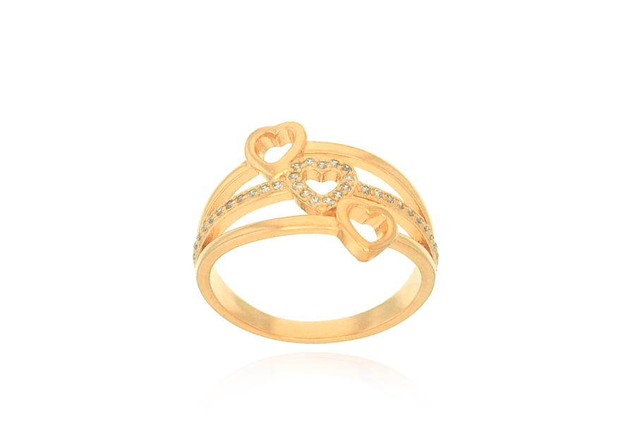 ANEL BANHADO EM OURO CORAÇÃO ZIRCÔNIA 4X4mm PARA QUALQUER COR DE PEDRA