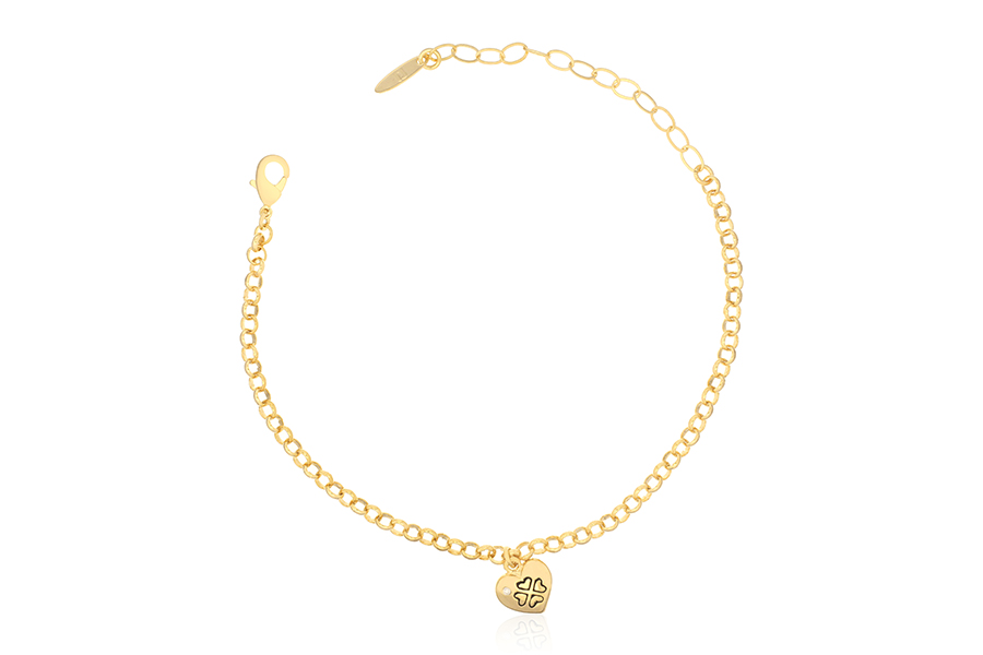 PULSEIRA BANHADO EM OURO INFANTIL ELO PORTUGUÊS 3mm LARGURA 13cm COMPRIMENTO E CORAÇÃO 9mm LARGURA